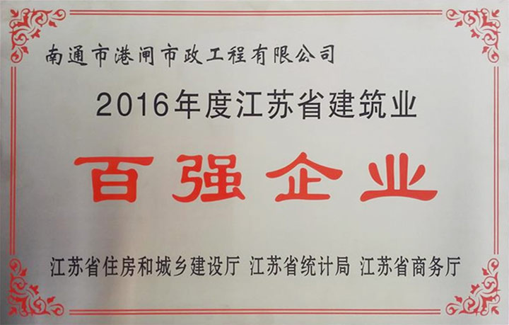 2016年度江蘇省建筑業(yè)百?gòu)?qiáng)企業(yè)