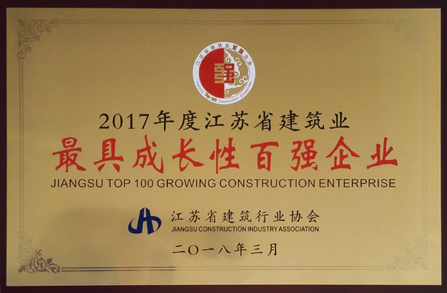 2017年度江蘇省建筑業(yè)最具成長(zhǎng)性百?gòu)?qiáng)企業(yè)