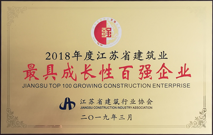 2018年度江蘇省建筑業(yè)最具成長(zhǎng)性百?gòu)?qiáng)企業(yè)