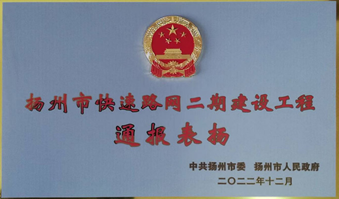 揚(yáng)州市快速路網(wǎng)二期建設(shè)工程 - 通報(bào)表?yè)P(yáng)