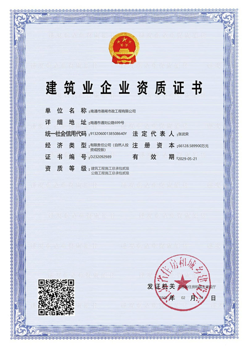 建筑業(yè)企業(yè)資質(zhì)證書(shū)(建筑工程施工總承包貳級(jí)、公路工程施工總承包貳級(jí))