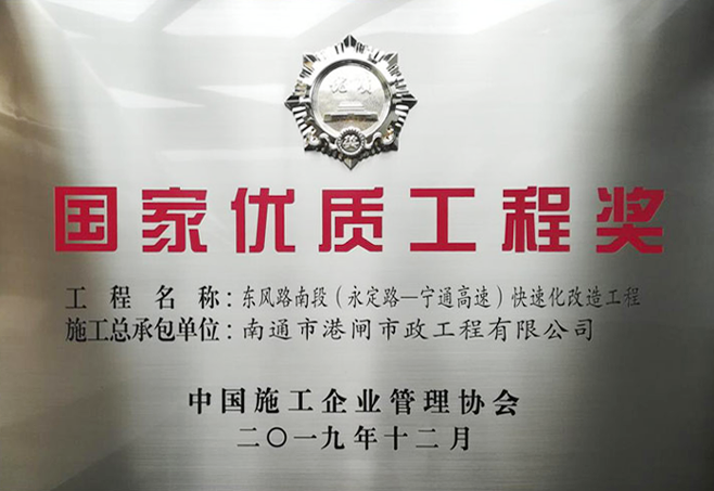 12月8日上午,由中國施工企業(yè)管理協(xié)會主辦的2019年國家優(yōu)質(zhì)工程獎總結(jié)表彰大會在國家會議中心召開,會上對獲得2018~2019年度國家優(yōu)質(zhì)工程獎的單位進行了表彰,我公司承建的泰州東風路南段快速化改造工程獲此殊榮!